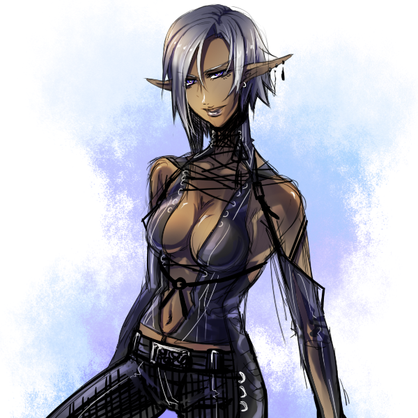 語部な日常制作中イラストや日記用イラスト、雑記雑感などを中心に展開中。まれに版権話や小説が出ることも。PAGE | 1 2 3 4 5 6 | ADMIN | WRITE 2013.04.06 Sat 01:04:13 スキル発動的な2013.01.26 Sat 20:35:11 こうなる訳です好き勝手に女性キャラを描こうと思ったら、こうなります。 銀髪紫目、小麦色肌、スレンダーエルフ風、西欧人モデル体型、 アシンメトリーな感じの髪。向かって右側が長くなることが多い。うなじ辺りが短いのも好き。 胸の谷間全開、喉元はハイネック、腰骨かへそ露出。 腰回りを全部出した服装よりも、チラリズムが好き。 ミニスカートよりも革パンツ系。 ベルトや紐をやたらに多様する癖もあります。構造考えるの好き。 黒タイツやガーターベルト、絶対領域も好き。 意外に好きなのは、ハイウエストなハーフパンツ。 ブリティッシュというか……ノーブルなデザインが好み。フリルシャツも素敵。 足元はブーツ系が多。ハイヒール。 構造はやたら複雑になるんですが、一応着れなくはないようなデザインにはしているつもりです。 肩に食い込みそうだなと思ったら、途中でベルトを分割してみたりとか、肩パットをつけてみたり。 動き回るとベルトが抜けそうだと思ったら、クロスするベルトを追加してみたり。 一番楽しんでいる部分かもしれないです。 2013.01.19 Sat 21:01:30 めきょ |