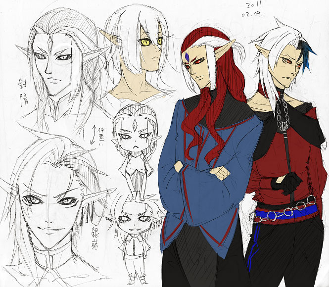 落描きを描いていたら、友達が、これにベースだけ塗って、暫定でも紹介絵を作った方が良いのではと言って下さったので。 うちの魔族陣。衣装は即興です……まだ全然出来ていない。 赤髪の方が斜陽で、白髪の方が銀嶺。左上に居る人は、まだ名前も決まっていない魔族の女の子。 あとオカマとバカが増える予定。 「テメェそのカッコなんとかしろ。何でそうなるんだっつーんだバカ」 「あらぁ、レディに対してそういう口の聞き方はないんじゃないのぉ? お姉さん悲しいわあ」 「どこがレディなんだ超バカ。そもそもテメェ「2世代目」だろうが。性別とか関係ねーだろうが。女がいいなら女の形になれよ。なんでそんな中途半端なんだ」 「いいじゃないの。私はむ せ い べ つv」 「ナリは完全に男だっつーのキモチワリィ。なんであえてソコなんだオカシいだろ」 「うふふ、そこは乙女のひ み つv」 「があああああああああああああああああ、いい加減にしやがれっ。テメェオレをからかって楽しんでるだろっ」 「あらあ、今更気付いたの? お馬鹿さんねえ」 PR TrackbacksTRACKBACK URL : CommentsComment Form |