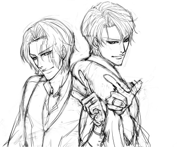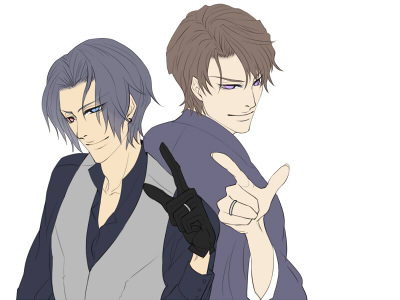 語部な日常制作中イラストや日記用イラスト、雑記雑感などを中心に展開中。まれに版権話や小説が出ることも。PAGE | 853 852 851 850 849 848 847 846 845 844 843 | ADMIN | WRITE 2010.09.22 Wed 11:58:49 2周年だそうで+【メイキングモドキ】※クリックで拡大。【原寸サイズ】版は、縮小前のファイルのjpgデータ。 お、わ………………った。所要日数二日。所要時間は……15時間くらい、でしょうか。 ええと。相互先の碧様宅が2周年ということで……お祝いの意を込めて贈らせて頂きます。 うちの狂と、碧様宅の琉璃さん……なんです、けど………偽物、どころか……別人に。 なぜこのタイミングで初描きの人をチョイスしたのか、と、途中で頭を抱えたりもしたんですが……最近私内でフィーバーしていたので……つい。表情も、どころか髪型すら似なくてすみません。 というか、なぜ和服にしたし私(本来洋服)。そしてなぜSっぽさのある笑みになったし(本来へたれ(?)。 おかしい……なあ。私が琉璃さんに抱く、格好良いなあと思う部分が見事なまでに表現できてないです。 髪型が再現できなかったのが……最大の敗因でしょうか…………本当に、もう。 ……ち、なみに、ポーズには「2周年の2!」の意味があったんですが……軽く行方不明になりました。 あと、両者指輪をしてるなあという点にときめいてこのポーズにしたはいいものの。 ……これだと、まるでお揃いの品っぽいです……ね………なんてことをしてるんだ私。 ……………………ごめんなさい碧……。2周年おめでとうございました(ごまかし)。 続きにて、夜中、描くのに飽きるたびにだらだらと綴っていたこの絵のメイキングモドキ。 (リアタイで呟いていたバージョンは、1個下の記事に折りたたみ) ■下描き。1600×1200(350)で描いてます。 ■下描きが中々上手くまとまらなかったので、水彩で色をおいて雰囲気を確認しました。 ■クリックで原寸大。普段よりもほっそり+線数の多い線画にしてみました。 ■ベース色をおきました。画像は、全作業終了後に新しく生成したものです。 ■目。レイヤ分けは、白眼ベース1枚、黒目ベース1枚、ハイライト(線画より上の階層に)1枚。 白眼に紫寄りのグレーをいれて、黒目にエアブラシでグラデーション、真ん中にベースの色で点、最後に鉛筆でハイライトをいれてぼかし消しゴムでちょっと削る。 ■髪と肌以外の部位。レイヤ分けは、部位ごとにそれぞれ、ベース1枚、影用の乗算1枚の2枚づつ。 ベースレイヤに、服の模様などを描きこむ。 乗算レイヤを新規作成してクリッピング、薄いエアブラシで紫寄りのグレーを物の形にそって大まかに入れる。細かい影(服の皺など)に合わせて、消しゴムと濃いエアブラシで削って描いての繰り返し。 指輪のハイライトのみ、目のハイライトのレイヤにエアブラシで白を置いてます。 ■髪の毛。レイヤ分けは、ベース1枚、影用の乗算2枚、ハイライト1枚。 乗算レイヤを2枚新規作成クリッピング、1枚に薄いエアブラシで紫寄りのグレーを頭の形に沿って大まかに入れる。もう1枚に、薄い水彩で髪の束ごとに荒く影を付ける。さらに、濃くて伸びが少ない水彩で細かい影を描き入れる。 最後に、線画のレイヤより上の階層に通常レイヤを新規作成。少し濃度を下げた鉛筆で、ベースと同じ色を使って、ハイライトと細かい髪の流れを描き入れる。↑ちょっと雑すぎた感じが……。 ■肌。レイヤ分けは、ベース1枚、影用の乗算2枚、ハイライト1枚。 乗算レイヤを2枚新規作成クリッピング、1枚に薄いエアブラシと濃いエアブラシでベースより低彩度+低明度+赤寄りの色を置く。薄いエアブラシで、額~目、目~顎、首~鎖骨までの区間にグラデーションを掛けるように色を置くといいの、かもしれない。その後鼻の影と唇の影、喉の濃い影を濃いエアブラシで乗せる。 もう1枚に、濃いエアブラシで影を描き入れる。時々ぼかし消しゴムで削ったり、薄いエアブラシでほんのり色をのせるといい、のかもしれない。 最後に、瞳のハイライトと同じレイヤに、濃いエアブラシで白のハイライトを描き入れる。 ■背景をつけて、全体の色彩調整と、気になる部分の修正をしました。 これで一応、描く作業は終了です……。 ここからは、CA(COMIC ART CGillust ver.4.5PLUS)に移動して加工作業に入ります。 ■なんかあれこれ加工されました。透明度を1%下げるか上げるかで悩んだりします。 あとで見ると大変にどうでもいい微細な差なんですが、悩んでいる間は本気です。 今回は、減算1枚、ソフトライト3枚、乗算1枚を使いました。 他に、背景を描き直したので……そちらにも、通常1枚、オーバーレイ1枚、減産1枚を使ってます。 色は、青→橙、赤→黄、黒→透明のグラデーションを使用。 …………↑までSAI色だったのが、一気にCA色になった気が……します。やりすぎたか、な。 ■クリックで原寸。1つ前の絵に、さらに枠をつけて文字をいれて、色味も少し調整しました。 ■CAで縮小後、写真屋(エレメンツ)に移動。全