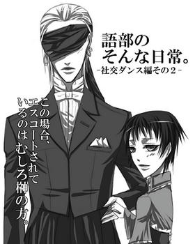 歪、榊共に20歳くらいの頃(まだ幸はいない)。 「久し振りに訪ねて来てくれたと思ったら……どうしたんだ歪?」 「いや、久方振りにお前の顔を見たいと思い、父上に留守を頼んだら……最近倒れたようだからついでに暫くハウスキーパーをやって来い、と……派遣されて来た」 「……それで、語部の次期当主が自ら、私の屋敷まで世話役をしに?」 「あくまで次期の候補だ。別段権限がある訳でもなし。そもそも、当主という立場だとて語部の意思決定を司るだけで、偉い訳では無いだろう」 「……君も狂様もかわっているな。ところで、私は何をすれば?」 「倒れたのだろう? 無理はせずに、腹を空かせて待っている事だ」 「余り甘やかすと良くないと思うんだが」 「お前はいつも無理をし過ぎるだろう。このくらいで丁度……分かった。そこに座って、ハサミで海苔を千切りにすると良い。薬味にする」 「…………」 「それとも、皿と箸を用意する方が良いだろうか?」 「……君の中で、私は手伝いをねだる子供の位置合いなのか?」 「眼帯で料理をする所など、危なくて見ていられない」 「いつもこれで刀を打っているんだが」 「取り合えず、俺が此処に居る内は甘えておけ。しっかりと静養しなければ、良くなるものも治らない」 「……君の感覚は、未だによく分からないな。……海苔を切る事にする」 精神的に調子が悪いです。 自己嫌悪の悪化で死ぬ事があるのだとしたら、死んでしまいそうなくらいに自己嫌悪中。 人のエゴイスティックな性分が見ていられないくらいきついのに、自分も人のうちのしかも小さな一人でしかないジレンマです。 地球の為に、とか、子供をイジメから守る……みたいなフレーズを見るだけで落ち込むと言うのは……もう一種病的な精神状態かなぁと思ってみたり。 久し振りにきついなぁ。 社会状況とか、政治とか……このままではいけない事は分かるのに、何も出来ないどころか、自分の意見さえまともに持てない自分が情けなさ過ぎて泣けてきます。テレビに出てくる人の言っている事が自分にとって良いのか悪いのかさえ、自分では判断できません。政経の知識が足りないのかなぁ。 りっちゃん>>メール届いておりますー。 拍手の方にも、コメント態々有り難う御座いました! 原稿が届く日を楽しみにしておりますv ……折角の企画に水を差すような事にだけはならないよう頑張ります; 2008.06.20 Fri 19:49:16 社交ダンスその2分かり辛いけれど、実は照れている二人。