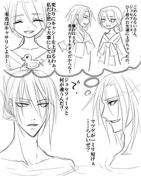 語部な日常制作中イラストや日記用イラスト、雑記雑感などを中心に展開中。まれに版権話や小説が出ることも。PAGE | 2 3 4 5 6 7 8 9 10 11 12 | ADMIN | WRITE 2008.07.19 Sat 14:50:46 ジョセフィーヌがっ!?ゆっきー宅のブログを拝見していたら……ジョセフィーヌとの単語が。あれ? ジョセフィーヌ? ジョセフィーヌっ!? 歪の名前が出ている事よりも衝撃でした(爆笑)。