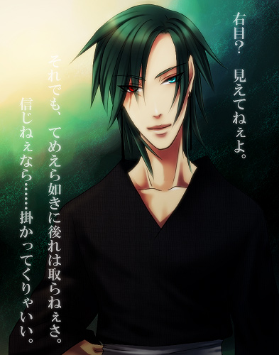 しばらくソフトで絵を描いていなかったら……加工の感覚を忘れました。 そして、刃を描くのも若干久しぶりです。右目の傷を忘れるところでした……危なかった。 刃はつり目。そして眉は細くない……太いというほどでもないんですが。 顎は細めで、髪はざんばら。長いところで、大体鎖骨くらいまででしょうか。 髪色は青寄りの緑で、肌は日焼け気味。小麦色まではいきませんが。 髪質は直毛で細め。普段ガサガサしているのは、整髪料で立てているからです。 身長はそこそこ、体型は細めでしなやか。 筋力があるので、多分外見イメージより体重重いです。 が、腹筋記録も懸垂記録も歪には及ばない。ちなみに、一番は綴。 筋力は刃の方が強いはずなんですが、歪は動きに無駄がないので回数が多いとか。 綴は単に筋力が強いから一番。 体型に恵まれている綴ならまだしも、歪に負けているのは地味に悔しいらしいです。 わりとピッタリしていて、動きやすい和装を好みます。 夏は袖なし、冬は手が隠れるくらい長い袖。 場合によっては、右袖だけ抜いていることも。 設定を出し始めると、ものすごく長くなります……無駄に細かいですし(笑)。 ↑なんて、外見設定ばかりなのにこんな長さで。 【タイトル話】 仮免前模擬テストは、とりあえず受かったんですが。 車の方が。受付に行って教習を一時間増やして貰うように……と、先生に言われました。 その上、受付に行ったら、予定が詰まっているので増やせませんって言われた。 どうも、後3回の教習で追いつけと言うことらしいです。無理、無理無理。 余裕ないですってば。後方確認、指示器、後方目視、ハンドルとか無理です。 どうすればいいんだ……そうか、速度を落とせばいいのか。 クリープ現象で走行してやる。 2009.01.14 Wed 23:23:41 絵板が絵板が激しく楽しいです。久しぶりにハマりました。 何がいいって、まず、筆圧がないから線画を描くのが楽だということが第一で。 さらに、2値だから塗りつぶしツールも多用できます。 絵板だと、一枚の所要時間が短くすむので……一月中はやたら増えるかもしれません。 それでも、↑で多分総合4時間くらいは掛かっているのですが……。 ソフトで同じ時間を掛けて描くより、完成度が高く見えていいんですよね。 ■明日は、仮免の模擬テストを受けてきます。落ちたら嫌だなぁ。 明後日は無線で、明々後日にはみきわめ……かな? 無理だ。無理無理無理。 絶対無理だと思うんですが。緊張してS字で脱輪します絶対。 そもそも無線のコースを覚えられないです。恐るべし短期集中。予定詰まり過ぎです。 【追記】 ぜりちゃんにすごい楽しそうなバトン頂きました。こ、これはやらねば。 それから、黒狼さんちで拾った格ゲーバトンを天帝で回答したい……。 ……他にもバトン沢山溜まってます。すみません。 ……模擬が受かったら、明日いくつかやりたいと……思います。 ボケボケすごしているくせに時間が足りない……。わ、悪いパターンですね; |