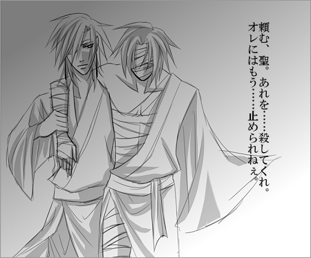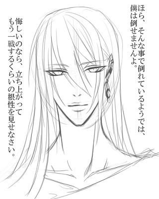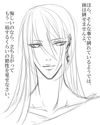 【お絵描きバトン】 *ルール* 1.回された人は回してくれた人の指示に従うこと。 2.指示に従って描かれた絵は必ず日記に載せること。 3.回す時は回すキャラと指示を選んで回すこと。 4.必ず指示選択欄に指示を足してから回す。 *指示選択欄* 【猫耳、眼帯、血、帽子、眼鏡、制服、花、リボン、お菓子、悲しみ、ハート、サスペンダー、包帯、和服、ポンチョ、鼻血、うさ耳、ヘッドホン、スーツ、タンクトップ、色気、笑顔、アイス、王子様、ホスト、子悪魔、ジャージ、泣き面、三つ編み、二つ結び、ピアス、水着、学ラン、魔法使い、浴衣、楽器、ギャルソン、パーカー、闇、サングラス、月光、魔方陣、悲しげな笑み、すいか、つなぎ、スポーツ、和服、子供化、大人化】 キャラ:他に大人じゃないキャラあまりいないので聖に 指示:大人化 ■■あなたの名前と使用した画材は? 狂十郎です。 愛称で呼んでもらうと喜びますが、自分から愛称で呼んで下さいとは言い辛いんですよね。 画材は相変わらずCOMIC ART CGillust ver.4.5PLUS。 サイトのCGメイキング更新しました。 ■■この絵でこだわった所は? 目を切れ長に。口元を小さく。髪をすとんとしたストレートに。 ■■回してくれた人の絵はどう思う? 素晴らしいです。美しいです。 キャラクターの顔立ちや体つきが格好良いのは勿論、背景が幻想的で。 ゴシックファンタジーや和風ファンタジーが好きな棺としては、もう憧れの的です。 ■■描き終えての感想を。 多分150年後くらいの聖。カフスは歪の形見。 ちなみに、台詞はこの時期に筆頭当主をやっている人の息子に向かってのもの。 語部はだいたい100歳くらいで当主引退します。もしくは就任して50年くらいで。 一度は引退して梓とのんびりしていた聖ですが、本邸の守護家当主が急逝したため、筆頭当主に頼まれて戻ってきます。 ちなみに、この筆頭当主。まさかの、刃と要の嫡子で。私もビックリの展開です。 聖は歴代最高の語部と名高く、混乱が起こるといけないので別人のふりしてます。 『聖』という名は語部内で有名すぎるので、『歪』と名乗ってたり。 年齢重ねた上に世界の大事と世間の荒波にもまれ、ひーちゃん腹黒化。 その上、この時期には歪の事も既にふっきれているのでかなり最強。 この辺の話もいつか書いてみたいなぁ。 ■■この人の絵がみたい思う人7人にキャラと指示を指定して下さい。 ↓でフリーに。面白いと思うんですよね。 ■■付け足すお題 回した人のキャラの衣装を自キャラが着る。 30日に拍手を押して下さった方へ。有り難う御座います。 やはり何回か押して下さった方がおられたようで……創作の力になります。 私信もいくつか飛ばしたいのですが……テスト期間を一週間間違えてたみたいで。 来週じゃんっ!? というボケっぷり。最悪な休みボケです。 勉強に対しての意識の低さが露骨に露呈しました。 ……そんな訳で、今週来週はいつもより勉強頑張ってみます。 それでも多分しょっちゅうPCやっていると思いますが; ミズナミさん>> バトンキャッチしました。回して下さって有り難う御座いますー。 是非回答させて頂きたいと思います。 それから……個人的に、27日の絵が大好きです。 優しくて、どこか切なさを感じる色合いが……何とも美しくて。 後姿ともこもこ感も素敵です。 |