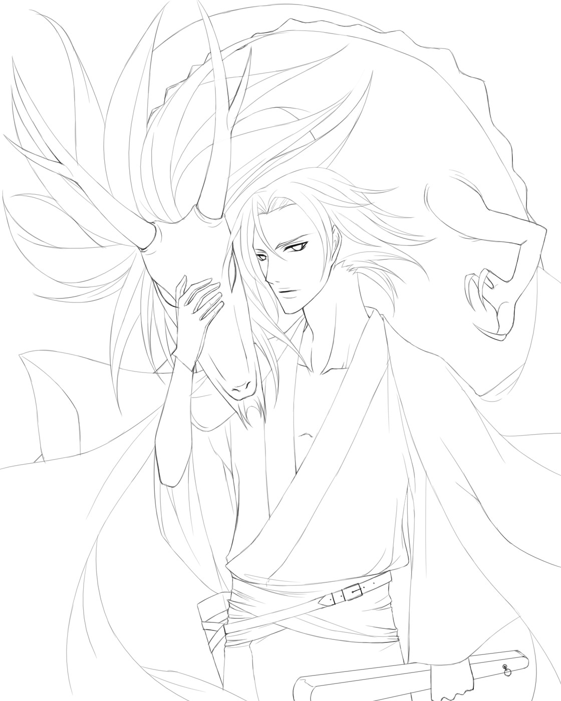 今日アップしたイラストから、塗り絵用に線画作りましたー。 ……眠すぎて語尾がのびますー。 【線画2(龍付き)】 こっちは龍の線画付きですー。 ……龍って楽しいけど難しいです。 えー。著作権は放棄していないので、無断で転載されてしまうと困るのですが……。 練習用、暇つぶしようにでも使って頂けると幸いです。 ……染めましたと報告頂けますと、漏れなく管理者が喜びます。 このイラストは大変だった。 何が大変って、全体の色決めが……もう大変で。 取り合えず、手前の狂の色が決まっていたのでまだ良かったですが。 最終調整用の加工レイヤの数が、多分10枚近くまでいったと思います。 総レイヤ枚数に至っては、多分60越え(げんなり)。 最後の方なんて、エアブラシをシュッと使うだけで、PCが20秒くらい沈黙してました。 ……CA公式サイトでこの絵のイベントをダウンロードすると、狂十郎の迷走っぷりが良く分かります(汗)。最初は龍、緑だったんですよね。神秘的かなぁと思って。 次はもうちょっと軽いタッチでよそのお子様お借りしようかなぁ。 描かせて頂きたい方が……沢山。 27日、28日に拍手を下さった方へ。本当に有り難う御座います! 続きから拍手返信。 2008.08.26 Tue 15:04:27 花を贈るバトン激しく間違えた。薔薇モチーフになってる。