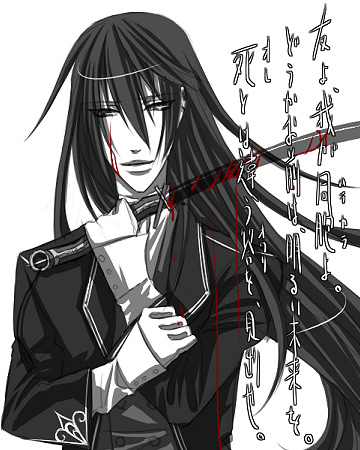 その上、徐々に収まりが悪くなっているような。 びょんびょんハネてます。 現在創作中絵。眼帯無しの榊。カラーで描くのは久し振り。 他に綴と狂同時進行中。 榊と狂と刃は鬼門ですね。 イラスト毎に髪の長さや飛び具合が微妙に違います; 刃は、サイドの毛が伸びたり縮んだり。 大体、耽美な感じで描くと長髪で落ち着いた毛に、闘士な感じで描くと短髪ハネ毛になるみたいです。どんな描き分けだ。 榊は上記通り。 最初はもっと普通のオールバックだったのに。 狂は、描くたび後ろ毛が伸びてます。 ハネ具合もアップしてますし。何か獄/寺君みたくなってる。 やはり、意識はしていなくても、狂十郎がその時に好きなモノが色々細々と反映されているみたいです。テレビや漫画で見た格好良いなぁと思うモノが、知らず取り込まれちゃっているみたいで。 ここから追記 何だこれ。誰だこれ。 ……綴だった筈の人です。描いているうちに、何故か、微妙にキラキラした格好良さになりました。何故。 何か、某ロボットアニメの議長を彷彿とさせる雰囲気だなぁ。二次創作だと言ったら通じそうな勢いです。穏やかなイメージだから、かなぁ。 そして、角生やしたら某方宅の陛下でもいけそうです。いっそ見事なまでに描き分けが出来ていない事が判明してしまいました……。 PR 2008.07.24 Thu 15:29:34 ※血表現有り注意某方の描いて下さった陛下の台詞にときめいたので、お返し。