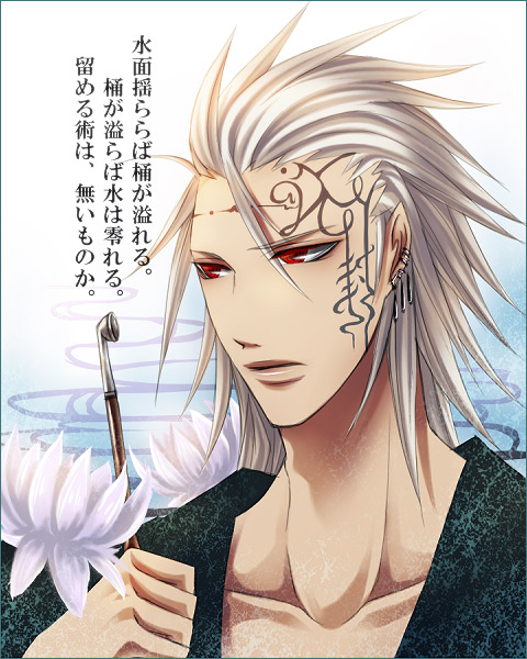授業は好きなのですが……通い先が家から遠くて。 -零るる水の行く先は- 望むのは、犠牲無い道。 欲するは、全ての幸福。 出来ぬ事だと諦めたなら、進める道も閉ざされる。 「さて、どうするか」 『詩で綴る10のお題』みたいな物を作ってみたい今日この頃。 四季や花を題材に……しかし、需要あるかなぁ。 ……自己完結の品で良いか。 先日の絵の時と比べ、詩の雰囲気が変わりました。 どうも、精神的に少し落ち着いたみたいです。 ……精神状態の不良とスランプと風邪と英語の授業と、何だかやたら追い詰められていた二週間弱。ブログを読み返すと、どうも、らしくも無く取り乱してしまっていたようです。 本当に沢山の方にご迷惑をお掛けした事と共に、今まで本当に沢山の方に支えて頂いていた事に気付きました。 言葉でしか物事を表現出来ない空間の中、更にとても狭い範囲の中でしか活動していない私ですが、それだけに、頂いた温かい言葉にとても救われました。 同時に、言葉を補う要素が少ない世界での活動は、それだけ沢山の責任が言葉に掛かるのだと言う事を思い知る機会にもなりました。 世界の誰とも軋轢が無い関係を築く事が出来ない事は分かっているつもりです。それでも、他人を理解しようとする努力、自分を理解してもらおうとする努力を放棄する事だけは無いように。傷付いて欲しくないと願う気持ちは忘れないように、という思いと共に、言動に対しては気を使うよう留意します。 ええと、結局何が言いたいのかと申しますと。 つまりは、しばらくやさぐれていた上に、若干図に乗っていた私を、それでも見捨てずにいて下さった方、助言して下さった方、励まして下さった方へ、心からお礼を申し上げたいと言う事で。 本当に有り難う御座います。 ……上の文章を読み返した感じ、まだ若干頭のリセットが効いていないようなので、もうちょっと頭冷やして来ます。 最近妙に哲学的な事ばかり考えてしまっているらしく……読む方によっては不快に思われるような、狂十郎の思想が入り混じった文章ばかり仕上がります; 日記なのに。 拍手を下さった方へ。有り難う御座います。 7/12をもって、拍手のイラストが全て復旧完了しました。 7/1から今までの間に拍手を押して下さった方は、お礼の画像をみる事が出来なかったかと存じます。申し訳ありませんでした; 2008.07.11 Fri 19:45:36 絵チャ会について2008.07.10 Thu 20:10:19 伝えるのって難しい初心に戻って、ひたすら格好良い顔の歪を目指して描いてみたのですが。……あれ、何だか悪役っぽい? 悪そうな笑顔になってます歪さん。