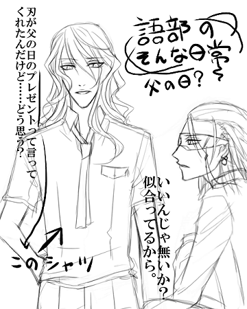 他のサイトからも、いくつかバトンを頂いているのですが……。 反応遅くてすみません; バトンをやる気力がありませんでした……。 近いうちにスパッと回答します。 2008.05.25 Sun 21:38:53 拍手って綴「いや、問題はそこじゃないと思うのだけど」 榊「? 違うのか?」 綴「……分かった。うちの人たちは皆常識がずれている事が理解出来たよ」 榊「? それは良かったな」 人と話す機会が少なかったからか、榊はどこか浮世離れしてます。 現代版の語部たち。 榊は包帯ではなく、遮光性の高いサングラスをしてます。 ヤ/フーでネク/タイ/付き/ポロ/シャツを見て、格好良いなぁと思って描いてみたら。 何でかこんなネタになりました。 ……予想を超えて綴とポロ/シャツが合わなかったのが原因か。 刃は、多分歪にも何かプレゼントしていると思われます。 刃にとっての綴と歪って、そんな位置合いらしい。 ちなみに。狂には多分プレゼントありません。 刃の中で、彼は大人として認識されていないと思われます。 今更ですが。 今まで拍手のお礼として置いていたCGメイキングは、イラスト(しかもCGで)を描く人以外には全くもって意味が無い事に気付きました。 と、言う訳で。ちょっと差し替えてみました。 ……言う程大したものでは無いのですが。 いまだ漫画はそんなに描けないので、しばらくネタ絵でも置いてみようかなぁと思います。 2008.05.24 Sat 20:59:49 【追記】誰だか分かる人はこれを見て誰なのか分かる方は皆無だと思うので自分で言います。 歪です。 ……一応絵にも名前を入れているのですが……私の書く字は読みづらいですし。 歪は、ラスボスとして聖に倒された後に、天帝に拾われるという設定があったりして。 天帝の眷属に下った後の外見設定なので、耳が尖っていて金冠を嵌めてます。 お仕事は、天帝の身の回りの世話。 表情がわりと柔らかいのは、人として生きていた頃に比べると、色々吹っ切れたから。 アーカイブにも縛られていないですし。 実は。歪の運命があんまりにも過酷過ぎるので、その救済措置として考えた設定。 髪型がアレな事になっているのは……実は色々設定があるのですが。 その辺りはまだ本決まりしていないので……不評だったらやめます。 描いてみて気付いたんですが。やっぱりこの髪型は違和感バリバリですね。 【追記部分】 久し振りにテイ/ル/ズの公式サイト群を回っていたのですが。 ヴィス/ペ/リ/アが物凄く面白そうですね。 テイ/ル/ズシリーズらしい壮大さで。 キャラクターや世界観がどう展開するのか分からない分、ある意味ラタ/ト/ス/クよりも気になります。 X/ボック/ス持ってないので買えませんが。 そして。レディ/ア/ント/マ/イ/ソロ/ジーのキャラクター紹介を見ていて。 クラ/ト/スの項目で、「ロイ/ドやプレイヤーに対し、厳しい態度を見せるが、それは寡黙かつシャイな性格ゆえのもので、周囲からは冷血漢と誤解されるが、その裏には優しさや真意がある。-公式サイトから抜粋」て。 シャイな性格ゆえ!? 寡黙なだけじゃなくて、設定としてもはっきりシャイなんですか。 態々書くくらい主設定なんですか。 何か……新発見でした。 |