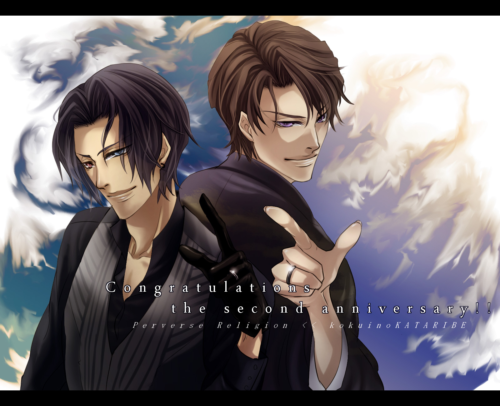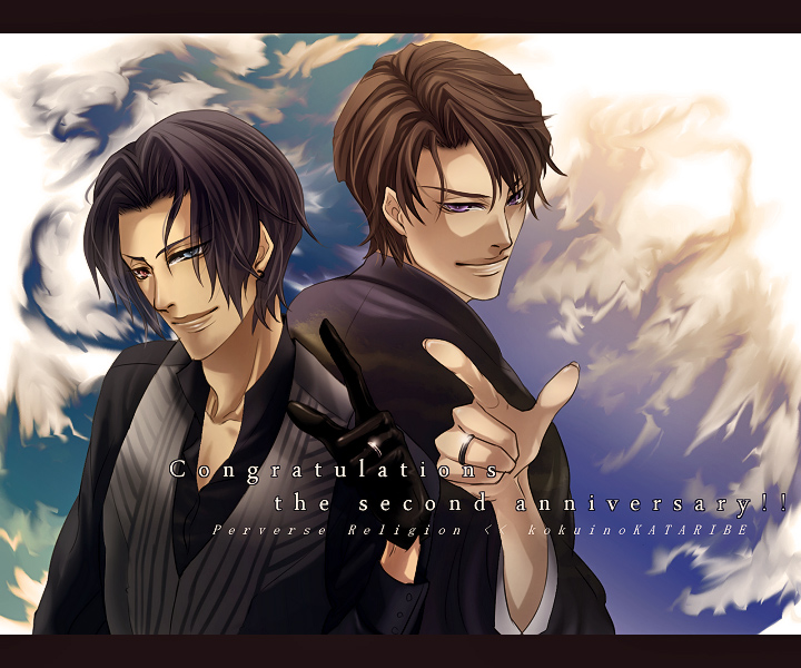 改めて並べてみると……同一人物…………じゃあ、ないんじゃね? というレベルの……差。 ちびキャラは例外にするとしても、左右二枚の差も中々に激しいですか、ね……。 ←の時期は、キャラクターがちょっと可愛い(どこか女性的な)絵柄になっていたので……。 →では骨格などの色々を男性的に、と……意識してみた……つもり、です。 ■拓海ちゃん、せんり、日記に反応ありでした。 拓海ちゃん<< 確かに普段ラフ絵を出さない人のラフってときめきます。そう思って貰えたなら超絶に嬉しい。 せんり<< いやむしろあなたがメイキング作って下さい。すちっかむ楽しみにしてるんだぜ。 2010.09.22 Wed 11:58:49 2周年だそうで+【メイキングモドキ】※クリックで拡大。【原寸サイズ】版は、縮小前のファイルのjpgデータ。 お、わ………………った。所要日数二日。所要時間は……15時間くらい、でしょうか。 ええと。相互先の碧様宅が2周年ということで……お祝いの意を込めて贈らせて頂きます。 うちの狂と、碧様宅の琉璃さん……なんです、けど………偽物、どころか……別人に。 なぜこのタイミングで初描きの人をチョイスしたのか、と、途中で頭を抱えたりもしたんですが……最近私内でフィーバーしていたので……つい。表情も、どころか髪型すら似なくてすみません。 というか、なぜ和服にしたし私(本来洋服)。そしてなぜSっぽさのある笑みになったし(本来へたれ(?)。 おかしい……なあ。私が琉璃さんに抱く、格好良いなあと思う部分が見事なまでに表現できてないです。 髪型が再現できなかったのが……最大の敗因でしょうか…………本当に、もう。 ……ち、なみに、ポーズには「2周年の2!」の意味があったんですが……軽く行方不明になりました。 あと、両者指輪をしてるなあという点にときめいてこのポーズにしたはいいものの。 ……これだと、まるでお揃いの品っぽいです……ね………なんてことをしてるんだ私。 ……………………ごめんなさい碧……。2周年おめでとうございました(ごまかし)。 続きにて、夜中、描くのに飽きるたびにだらだらと綴っていたこの絵のメイキングモドキ。 (リアタイで呟いていたバージョンは、1個下の記事に折りたたみ) |