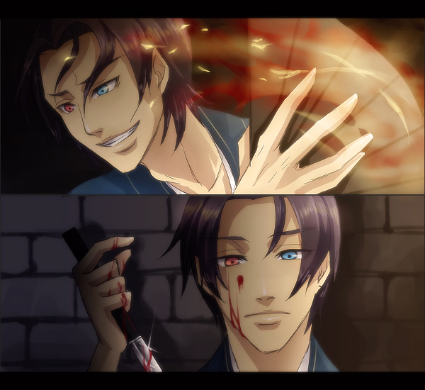 狂。身内に手を出されたらどうなるのか、みたいな話が出たので。↑こうなります。 ちなみに、口元に笑みが浮かんでいる状態の方がまだいい。無表情が一番危険。 普段あまり表に出ませんが……家族外に対しては結構容赦なくSだったりします。元々結構鬼畜な人。 そういう面で、やっぱり琉綺宅のユフィさんと似ているのかなぁと……思ってみたり。 関係ないですが……池を貸せ……に爆笑。 ■■思ったような表情が出なくて残念です。もっと狂気的にしたかったんですが……。 そして、私は気を抜くとアニメを意識した色合いになってしまうらしいことが分かりました。 最近流行りのさっぱり塗りを練習しようと思っていた筈が……手順は同じなのに、色合いが重いせいで違うモノに。 2010.02.10 Wed 02:10:11 【書き掛け】人物像某さくら様宅で、とても興味深いお話をお聞きしたので便乗。が、結構に話が逸れてます。