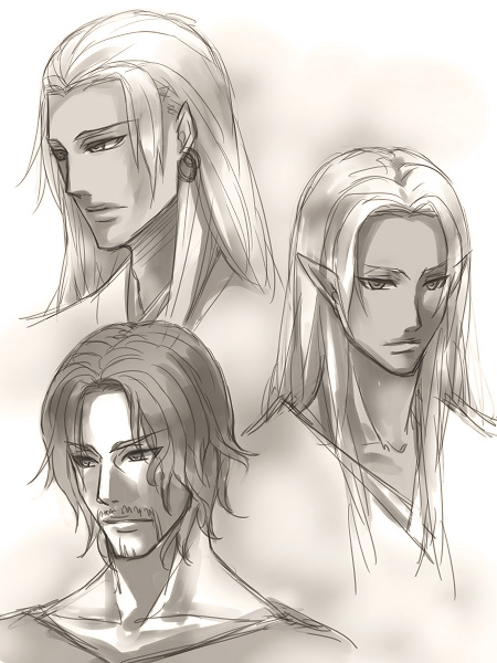 ハマるのが遅すぎですか。 キャラクターが皆さん魅力的で、その関係性もすごく素敵で、世界観も素晴らしかったです。 他にも、絵柄のデフォルメ具合や、動きとか、風景とか……すごかったですし。 各話共に、話運びや人物の行動に違和感が全くなくて……話の流れも素敵でした。 本編ストーリーも、現実的で重厚な感じを抱えつつ、けれど視聴後に重さが残る感じじゃなくて。 重くて辛くて悲しいような話は苦手なので、すごくちょうどいいバランスでした。 本筋はがっつりシリアスで色々な問題があるのに、どこかほっこり爽やかです。 キャラクターが柔らかいからでしょうか。それから、画面の色彩が明るくて爽やかなのと。 シャン/グ/リ・ラと方向が近い感じですが……個人的には、こちらの方が更に好きです。 ハルさんが素敵だ。 2009.11.14 Sat 19:09:09 描きかけ終わりそうな気がしないので晒しておきます。説得力のある骨とか描けそうな気がしません。 自分内で、狂気チックな絵がブームらしい今日この頃です。 ■絵チャ終了後、一時間半くらいうとうとしていた所で森林ボランティアに引き摺られて行きました。 山登って植樹してきました。途中眠気でふわふわしてました。自業自得です。 ■久し振りの絵チャに来て下さった皆様に、心からお礼申し上げます。 ……人が誰も来なかった時のことを真剣に考えていただけに、とても心に沁みました。 基本自分に自信のない管理者なので、また来たいとか、再開を待っていた、と言って頂けると、本当に励みになります; ありがとうございました; 至らない管理者ではありますが、色々と精進していく心づもりではありますので……。 今後とも、長くてぬるーい目で、見捨てずに頂けると嬉しいです。 2009.11.13 Fri 18:35:41 定時チャット会のお知らせ14日午前5時50分終了。…………死亡フラグが立った。 ご参加下さった、咲夜様、結月様、直秋様、拓海様、燈褪様、白羽様、センリ様、架様、Ai-R様、雪村様、碧砂様、本当にありがとうございました。 ■金曜日定時絵チャ会のお知らせ。【13日午後10時より】チャット会を予定しています。 文字だけでの参加、初めての方、初めましてな方の参加も歓迎させて頂きます。 と、言いますか……一人きりは寂しすぎるので、どうぞお気軽にご参加ください。 久し振りのチャットなので……人が来なさそうであれば、12時頃にはしまいたいと思います。 【追記】明日の予定の関係で、あまり夜更かしはできないかと思います; 2009.11.10 Tue 20:20:59 そう言えば被ってた上から榊(若いころ)、天帝、武器屋。あんまり登場しない人たち。 天帝を色黒にするにあたって、そう言えば榊と被ってた……と気付いたので描いてみました。 武器屋は………場所が余ったので、オマケ。 榊は白金の猫毛。長くても短くてもすとんと下に落ちます。 天帝はもう少しくすんだ銀色よりの金。硬さは微妙。硬いという程ではなく、柔らかくもない。 基本はストレートだけども、うねったり癖になったりしやすいと。 ちなみに、天帝は色黒。榊は黄色人種のよく焼けた人くらいの色。天帝の方が濃いです。 武器屋は面長。髪は重いので頭頂部はぺたりとしていますが、癖があるので下の方はウェーブ。 顔立ちは多分、榊はアジア+欧州、天帝はアジア系、武器屋はラテン系……じゃないかなぁと。 |