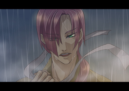 オレはあれに、一番近かったんだからな。分かるさ。想うことも、願うモノも。 だが、オレには……代案が提示できなかった。 思考の中身は理解できても感情までは分かってやれねぇ。そしてそれは、あれも解っていただろう。 オレには、あれの書いた筋書き通りに、あれの望む役を演じることしか、出来なかったのさ。 こんな言い方をするのは狡いかもしれねぇがな…………だからこそ、信じたのさ。 そしてそれは……あの孝行息子も、そうだ。オレ達にゃ、出来なかった。だから、回答を託した。 ………悪かったなぁ。オレは、オレに出来ねぇことをお前に託した。 そして、ありがとう。お前はあれの想定を超えた最後を、創った。あれの望んだ……最高の、最期だ。 ■原寸は、↓の絵の原寸の半分くらい。線を描くのが楽でいいです。 狂の顔にあるのは、火傷痕。残るのかどうかは、実のところ未定です。 この後狂は、正式に語部から退きます。 2009.11.05 Thu 22:38:56 完成2009.11.05 Thu 04:39:57 塗りまで |