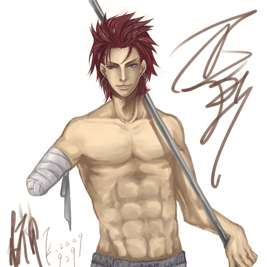 初期版の榊。性格は今の狂に引き継がれてます(外見も内面も違うとかもはや別人)。 某方が赤毛フィーバー中だというコメントを拝見して……赤髪って、そう言えばうちにはいないなぁ→あ、いや初期デザインが赤髪だったのが一人いた→久し振りに描いてみようかなぁ→せっかく露出度高いから、かねてから練習したかった厚塗り(モドキ)でいこう…………みたいな流れで。 なぜ厚塗りがしたかったかって……筋肉をペタペタと塗ってみたかったんです。 が。顔と髪は楽しくないので……次から、身体だけとか駄目かなあ。 冗談は置いておくとして。 リアルな絵柄とか、リアルな塗りをすると、今まで気付いていなかった問題点に気付けていいですね。リアルなだけに、ごまかしが効かないです。 主線なし絵の方がごまかせるという見方もあるかもしれないですが……主線なしの場合、デフォルメ率の低い立体的な塗りで表現するだけに、少しでも変だととことん変に見える気がします。 線だけだとごまかせる部分でも、主線なしだと立体を把握していないと塗れないので。 ……どちらにしろ、慣れの問題かなぁ。 たまに変わったことをしてみると……色々発見があって面白いなぁと思いました。 2009.09.27 Sun 23:45:18 せぇぇぇい買い物行ってきました。ミニ丈のスカートって久し振りに手にした気がします。