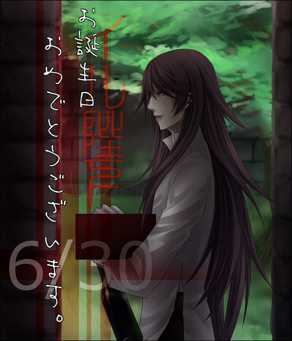 ジャンルを問わず好きなモノばかり見てきたので……うーん。 クリックで拡大。 ゆき宅の陛下のお誕生日が6月30日ということで。描かせて頂きました。 歪が持っているのは、ケーキと葡萄酒です。陛下のお城にお祝い出張してます。 なんと言うか……無意識で描いていた葡萄酒ですが…………よく考えたら大問題だ。 (設定上の色々につき) まあ……それはそれでいい。かな。 色塗りの段階まできて発覚したミスですが。歪の脇腹が見えてます。 普段シャツの上に何かしらを着こんでいる歪なので…………これがシャツで、その下には何も着ていないことを……完全に失念していました。 加工したらそんなに目立たなくなったので……まあいいかなぁと思います。 ■センリ様宅の日記がなんだかすごく素敵なことになってます。 絵がたくさん! ■ゼリ子様宅の日記を拝見して気付いた。 中学生の辺りで方向性が決まっていて、高校生の時点であの画力とか…………そしてそのままずっと描き続けておられるわけですから…………キャリアが違いますよね(絵師歴の長さではなくて……あのレベルまで上手くなってからの長さです)。それは安定している訳です。 同じ歳の頃の私の絵なんて………………見れるものじゃないと思われます。 いえ。卑屈になっている訳ではないです。 ただやっぱり、向上心を持って一生懸命描くことは大事なのだなぁと言うところで。 そして同じくゼリ子様のブログで素晴らしいモノ発見。 ゆき作詞作曲、ゼリ子様歌な語部メインテーマなんて……豪華すぎませんか。 何だかアニメのオープニングテーマのようでものすごくときめきました。 (もはや私信) そして。作者様的にはカイナさんの方が難しいのかぁ、と……ちょっと衝撃を。 ゼリちゃんのカイナさん……男前だと思いますが。ハヤテさんは綺麗。 男前…………いえ、男前がなんなのだかよく分からなくなってきました(笑)。 本家様の設定を把握するのって、なかなかに難しいですよね……。 ハヤテさん、頑張ります。そして、こっそり歪も楽しみにさせて頂きます。 狂との描き分けは…………まあ、表情ですよね(笑)。 ゼリちゃんが描いて下さる歪と狂は、毎回格好良くて……本家とすげ変えたいくらいです。 ■続きより拍手返信 2009.06.30 Tue 16:50:17 能面と謡曲について最近、能面打ちと謡曲を習っている狂十郎ですが。